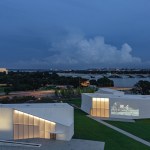 The design for The REACH merges architecture with the landscape to expand the dimensions of a living memorial. The landscape design includes a narrative reflection on the life of President Kennedy: a grove of 35 gingko trees, which will drop their golden autumn leaves in late November, acknowledges John F. Kennedy’s position as the 35th President of the United States; and a reflecting pool and mahogany landscape deck are built in the same dimensions and mahogany boards of Kennedy’s WWII boat, the PT109.