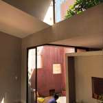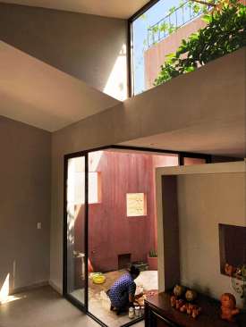 Rooftop garden also have a role to insulate the house. The internal temperature is significantly reduced compared to the corrugated steel roof. Besides, a green covering structure of the roof reduce heat radiation to the environment. Combined with the 2-layer wall, there are ventilation openings on the wall and courtyards with natural lighting, so the house is always airy.