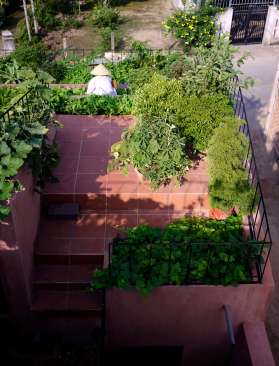 In a small site, the house needs a lot of complex functions. Instead of having a large yard like other houses in the village, we create many courtyards with different heights, suitable for the height of the house structure. The products from the garden go directly to everyday meals, fresh and always available. The couple have happy hours together growing their own food, and a lot of times, sharing their products with the neighbor families, unexpectedly, the architecture has been generating community social interactions as its by-product. Specially, during the rainy season, there is still food available.