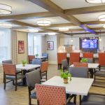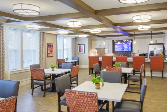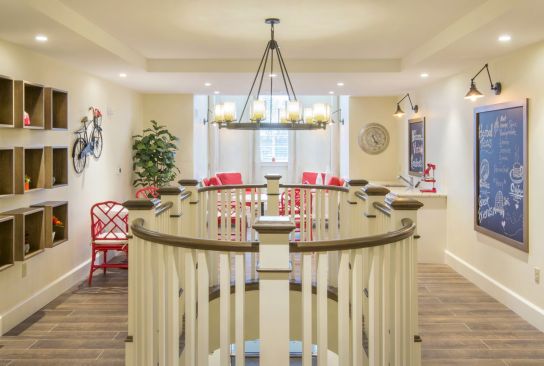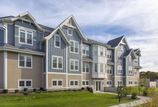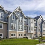 Located in the coastal community of Swampscott Massachusetts, Vinnin Square is a newly constructed continuum of care campus consisting of 84 units – 22 specific to memory care and 62 dedicated to independent and assisted living. The formation of a neighborhood setting was central to this project; by integrating the 77,500 square foot building into the site context it maximizes exposure to the commercial center of the town while providing the privacy of a larger residential community. The team re-graded the existing hillside by removing a portion of the prevailing knoll to maximize the building footprint and create picturesque views of the surrounding community and adjacent Tedesco Country Club.