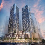 Designed by Aedas, the project occupies one of the best locations in Dubai Marina, facing the Arabian Gulf on one side and the Dubai Marina on the other. It consists of three residential towers standing above a cluster of podium loft units with retail facilities at lower levels. The towers range from 43 to 56 storeys, offering spacious, modern apartments and duplex penthouses. They are tied together by a seven-storey podium that houses waterfront villas and boutique retail units. Each building has its own tropical pool deck, gym and facilities.