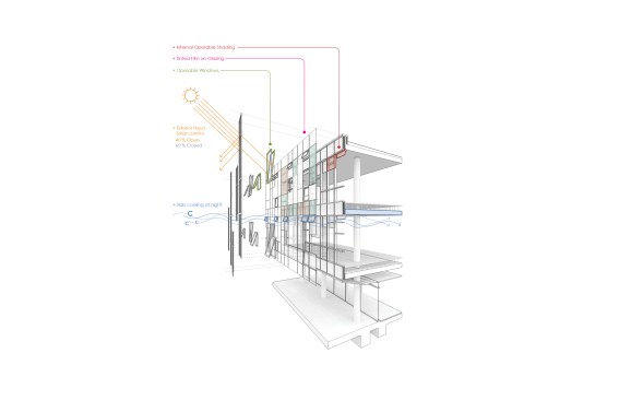 Natural ventilation throughout the offices enhances the quality of the internal environment and significantly reduces the building’s energy consumption and carbon footprint.
