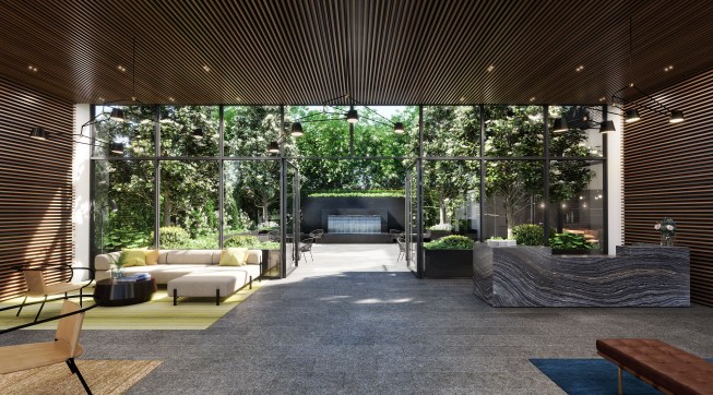 Designed by New York City-based DXA Studio, The Rowan will feature a terraced massing of light gray masonry that rests above a 210-foot-long glass retail base. Located one block from the N train at 21-21 31st Street in prime Astoria, Queens, the landscape-focused condominium will boast a dramatic wood and glass enclosed lobby that opens onto a lush private sensory garden —a welcoming respite from residents’ daily lives.