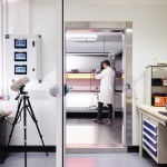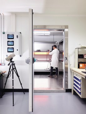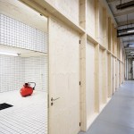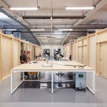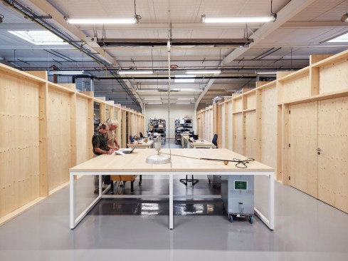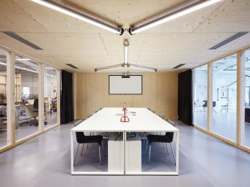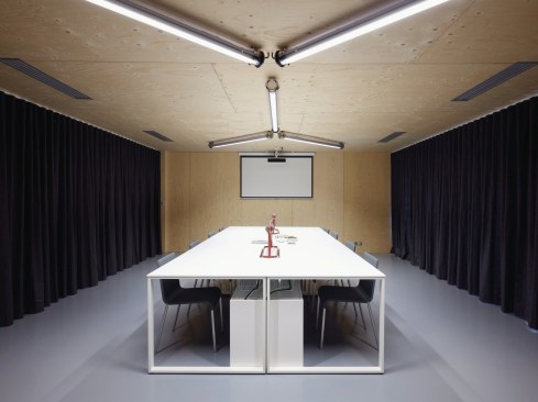 FREAKS was commissioned to design the rehabilitation project which had to meet the technical requirements of a research and development center by offering generous office spaces (open-space or more isolated). The interior is composed of four boxes built in wood structure covered with spruce, distributed in the building. Their supporting structure is visible from the open spaces. In these closed boxes, which are sometimes completely airtight and light-proof, numerous tests of resistance of the luminaires are carried out: thermal shock, waterproofness with talc, longevity, vibration, electromagnetic measurement …