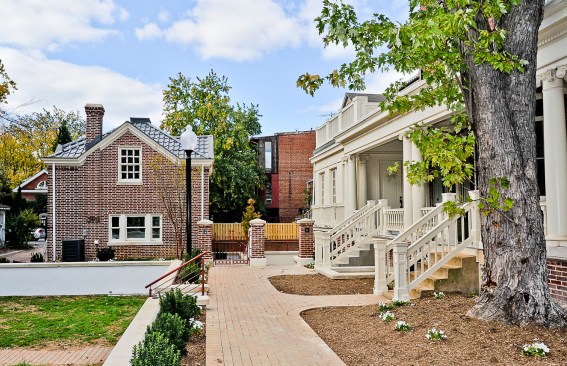 For the exterior of the building was developed to maintain its experience ‘in the round’ while providing light and access to the lower level of the building. Minimal sunken terraces were added and a two-story addition at the rear of the property was designed in the character of a sunroom with muted expressions of the porch elements.