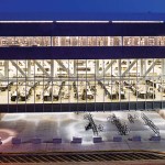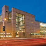Cruising down old Route 66, motorists glimpse an interesting sight: a two-story movie screen attached to a 108,000-square-foot university building. A throwback to the drive-in and a showcase for student video projects, the screen is a calling card for Antoine Predock Architect’s new School of Architecture & Planning at the University of New Mexico. The building had to accomplish many objectives: it had to provide a new face for the university along Route 66; complement the campus’s ubiquitous Pueblo Revival architecture; and espouse modern design principles. It had to provide instructional space, build community, house a library, and answer the myriad needs of an architecture school.