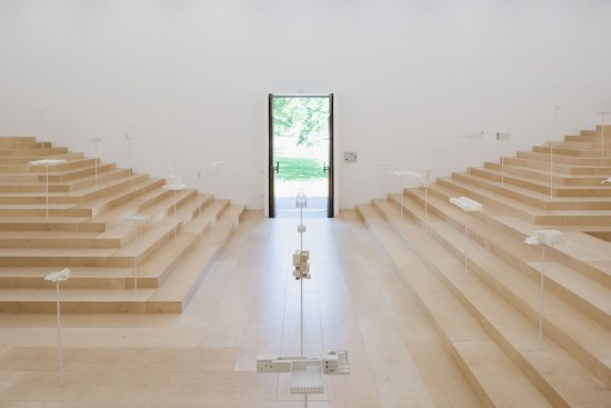 The School of Athens exhibition at the Greek Pavilion at the 2018 Venice Architecture Biennale considers these academic common spaces as architectural specimens; objectively identified, classified, and made legible for analysis, comparison, and debate. Specifically, the exhibition showcases physical models of fifty-six different academic common spaces from across history and around the world, both realized and unrealized. By no means canonical, complete, or definitive, this selection is simply meant to provide a diverse and representative sample of compelling projects.The fifty-six models on display are mounted on the end of vertical steel bars, elevated to waist height for easy viewing from all angles, and organized in a grid that fills the pavilion equally in all directions.