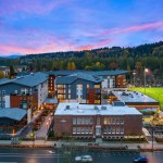 The project allows for historic context, with added vibrancy. Artwork featuring novelty items reclaimed from the historic schoolhouse are integrated throughout the buildings as a nod to the site’s heritage, creating an academic theme woven with historic imagery. The architecture creates a modern aesthetic rooted in local vernacular and woodland charm with views of the nearby Cascade mountains. The buildings are elegant against their surroundings, respectful of place, and sure to stand the test of time.