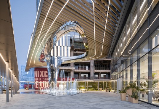 The frontage of Sungang MixC Market Hall, China Resources’ new mixed-use development in Shenzhen, is now complete. Created by Ted Givens, Design Partner of 10 Design, the frontage is marked by a stainless steel canopy that forms a dynamic sculptural first impression for visitors to the new complex, acting as an artistic gateway.