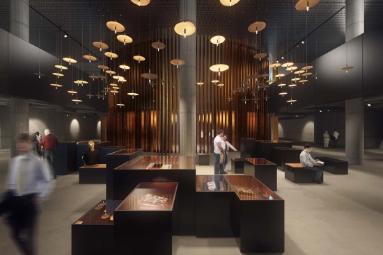 The project's form is called a silent design, intended to evoke powerful emotions and deep reflection. The museum’s spatial division into three areas symbolizes the relationships between the wartime past, the present and the future: the past is hidden on the building’s underground levels, the present appears in the open space around the building and the future is expressed by its rising protrusion, which includes a viewing platform.