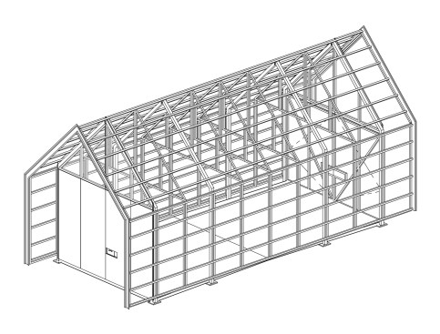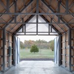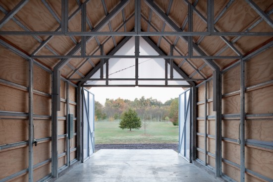 The Shed is an exercise in the logic and clarity of prefabrication. The outbuilding is composed of identical modular frames, wall panels and roof trusses. The prefabricated galvanized steel components were welded in the architect’s shop, then transported to the site, where they were bolted together. Prefabrication saved construction time and ensured a high level of quality and precision.