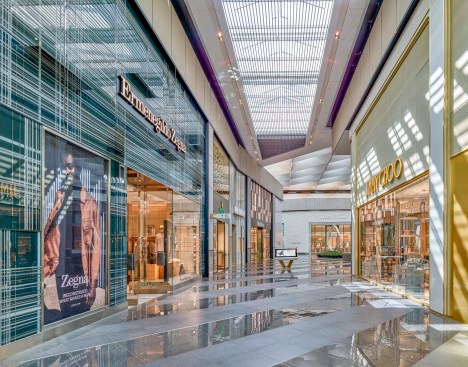 5+ Design, who was responsible for creating concepts for all three phases, recommended NELSON Worldwide be brought in to realize their design for the renovation of phase three, which drew inspiration from the Broad Museum in Los Angeles to provide a luxurious look and feel that would attract sophisticated brands and customers. NELSON Worldwide served as executive architect, which involved a 120,000-square-foot extensive refresh of the property’s exterior and interior to give the structure an updated, high-end look while piquing the interest of passersby.