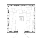 In responding to the harsh winter conditions of The River Trail, the design of the SMOKEHOUSE uses form and materiality to provide as well as signify shelter and warmth. The charred wood exterior alludes to the fire within while rendering it resistant to fire, rot and pests. The interior is lined with industrial wool felt, also naturally fire resistant, and provides both insulation and wind break. The felt is shingled and some of the panels are embossed by artist Rebecca Howdeshell with prehistoric imagery from the area dating back 6000 years. The primitive structure has a single small entrance and a vent hole in the roof that acts like a chimney.