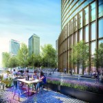 At night, feature lighting around the top of the tower will reinforce the landmark silhouette of Spire London, complemented by accent lighting to the trees, benches and paved piazza, creating a striking impression to the approach to the building after dark.