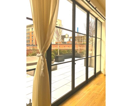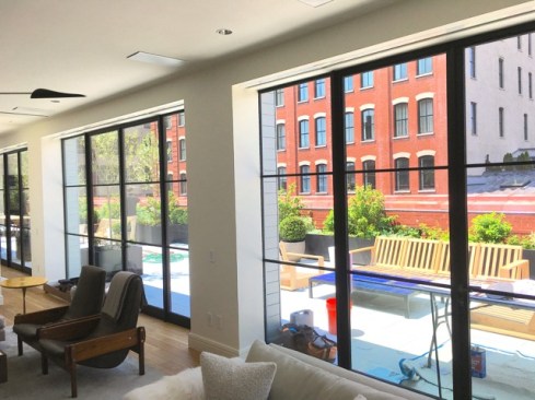 Laight Street Penthouse in Tribeca, better known as The Sterling Mason, is part of Morris Adjmi Architects latest warehouse transformation. The construction combined two buildings: a circa-1906 masonry loft that was once a storage house for coffee and tea, and a new structure that will be its mirror image, but with an aluminum skin.Influenced by Andy Warhol’s “Double Elvis”, this 7 story, 115,000 square foot modern reflection of historic Tribeca, has been converted into 33 distinctive condominiums, including 30 lofts and 3 single and double-floor penthouses. All the penthouses feature thermally broken stainless steel outswing french doors with fixed sidelights in a sightline construction layout.