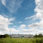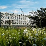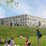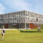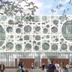 screen is made from pre-fab panels of white CRC concrete (Compact Reinforced