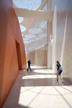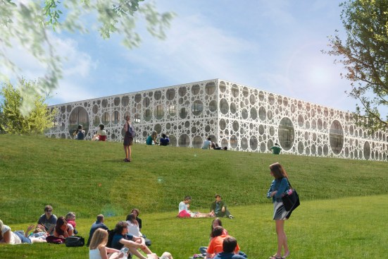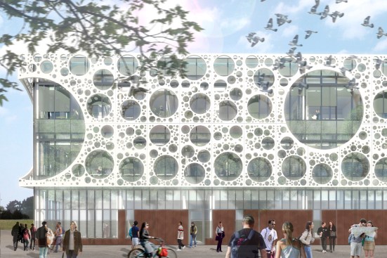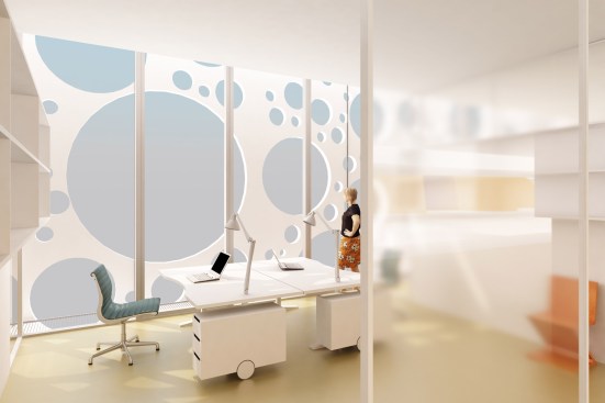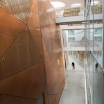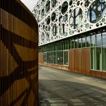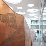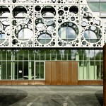 the panels’ perforation patterns have been optimized to act as a solar screen