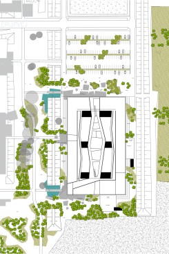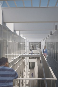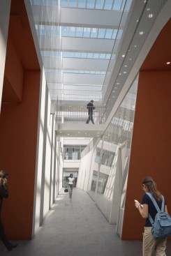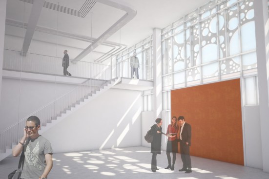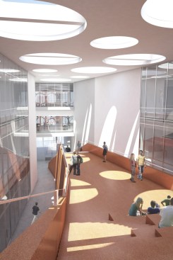 functions and meeting-rooms, and giving access to a roof garden/café/lounge
