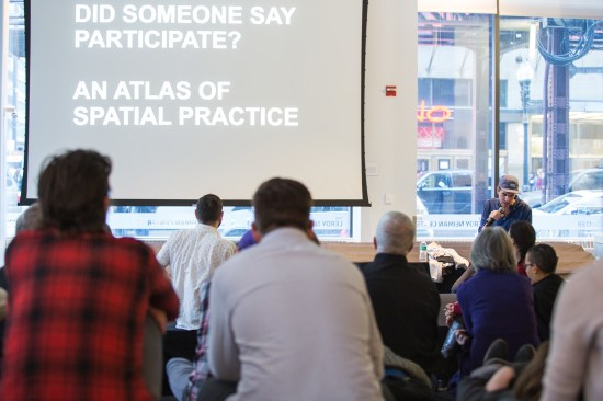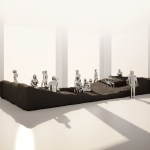 “The Uncomfortableness of Getting into Bed With Others” was an architectural installation accompanying a symposium on March 11 at School of the Art Institute of Chicago. The project is a piece of large furniture which temporarily replaces the traditional seating in the Neiman Center. Using seating as a method of questioning “participation” as a methodology in art and architecture (the symposium’s topic), the installation takes the form of a large bed which participants must negotiate while attending the day’s events. Low to the ground, the project is intended to challenge one’s sense of personal space, ergonomics, and the implications of sharing space with others.
