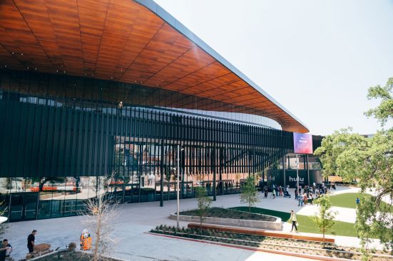 The Moody Center site presented a significant structural challenge due to site slopes up to 50 feet moving from west to east. A deep retention system with heights up to 70 feet was utilized, unprecedented for an arena structure. With much of the arena underground, a concrete frame forms the primary structure of the arena, daylighting at the upper concourse at the east side and the main concourse at the west side. Around the perimeter of the building the long-span steel roof cantilevers up to 75 feet beyond the building edge, creating shaded entry spaces for the warm Austin climate. The cantilever roof floats above an extensive glass curtain wall. Inside the building, the advanced roof structure supports an extensive set of amenities designed to make the building exceptionally flexible for a variety of events: a central retractable video board, a 250,000-lb. show rigging grid including an extensive tension wire rigging platform, and a one-of-its kind operable upper bowl closure screen designed to convert the venue from a full 15,000 seats to an intimate smaller 10,000 seat configuration. Walter P Moore also designed the arena bowl precast seating units to accommodate an efficient under-seat air distribution system that will help make the Moody Center one of the most sustainable arenas in the U.S.