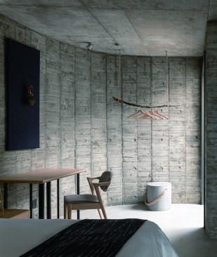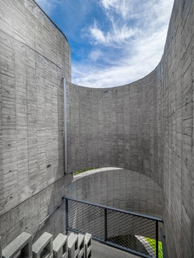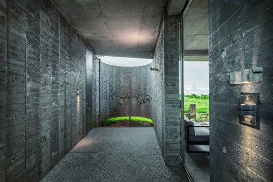 Inspired by the raw beauty of the natural surroundings, the design concept seeks to create a sense of quietude and permanence with a single architectural element and a minimal palette of materials; defining the entire architecture with just curves walls that are both structure and form, inside and outside, exterior and interior all at once.