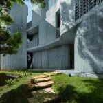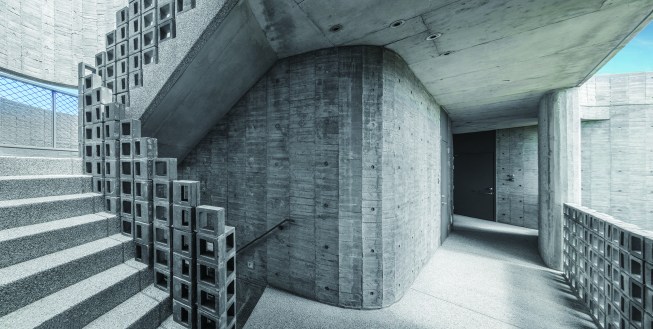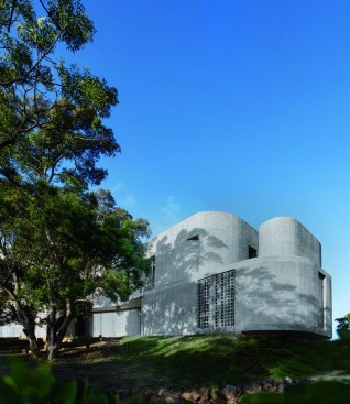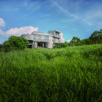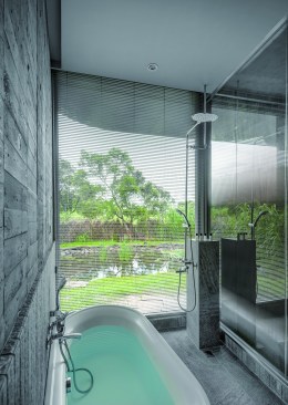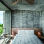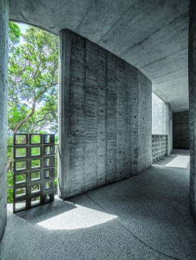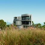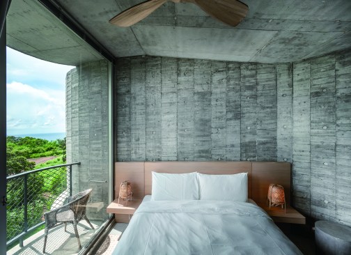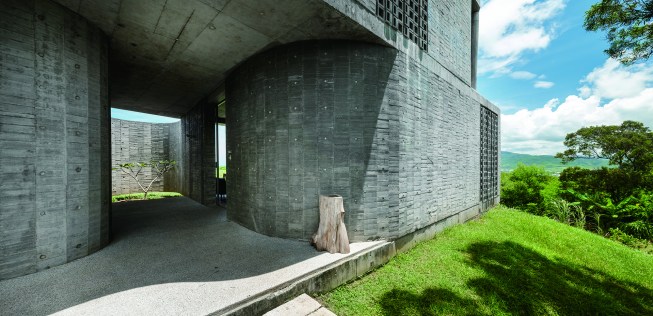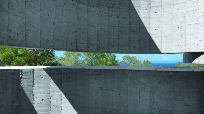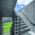 The flat slab and bearing wall structural system enables the concrete bearing walls to be misaligned vertically. The walls move in and out of the 3 floor independently, dictated by room layouts, views and the placements of wind barriers. At the stairs, curve walls hover over each other to reveal the horizon at the juncture of the sky, forest and ocean. The walls fly 4.5m off the 2F and 3F floor plates to form a vertical suspended enclosure, an echo chamber of sorts where the sound of acacia leaves rustling in the strong ocean winds is amplified. On the ground floor, the walls cantilever off the floor slab to form courtyards.