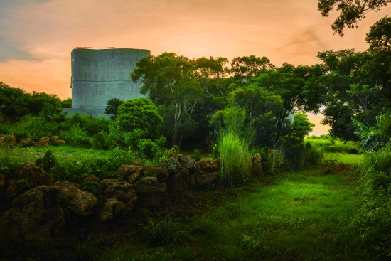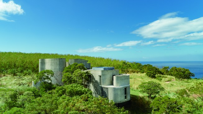 The building hugs the edge of a native crop of acacia trees to gently curve out towards the ocean. In addition to providing essential wind shelter, the acacia forest becomes the entry experience. The building has no windows on the windward side, but opens up to wall to ceiling windows towards the expanse of hill top grasslands and spectacular sunsets over the ocean.