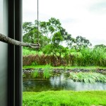 On the roof is a 360 degree infinity pool with sweeping panoramic views of the ocean and the surrounding mountains. Supplied with fresh water filtered from an eco pond on the grounds without the use of chlorine and other harsh chemicals, birds can often be seen playing in the pool. The conservation of the acacia and surrounding grasslands are primary aspects in the landscape design.