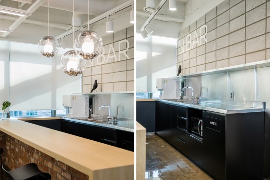The space consists of an open kitchen, a cafe, staff lounge, meeting room, sleeping room and a restroom. In order to contain all of them within a limited space, the space could be divided as much as possible without walls other than sleeping rooms and meeting rooms that require privacy. One of the methods is ‘stair stairs’.