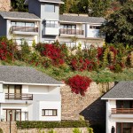 Site planning and organization was initiated with this premise, as per the existing natural slopes of the site. Layering of the base principles of circulation (existing and proposed), public amenities and the slope, led to the development of the site plan. The cottages and the internal road networks have been strategically placed in order to minimize the intervention through cutting and filling of the natural terrain of the region, whilst retaining the maximum of the existing vegetation and contours as undisturbed. The cottages are positioned on the slope in a manner that ensures unobstructed panoramic views of the scenic hills of the Shimla valley; the largest ones enjoy the farthest view. This is achieved by maintaining a minimum height difference between the roof level of each cottage and the ground level of the preceding cottage uphill.