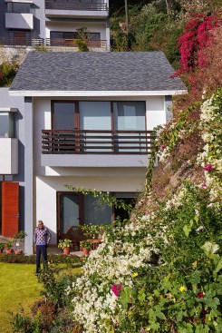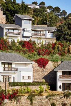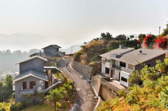 The development is located in close proximity to the town of Kasauli, which is well-connected by road to the cities of Chandigarh and New Delhi. The site is highly contoured land with level differences of about a 100 m within the site. The neighbourhood is predominantly used for agriculture and vegetation, and hence the site exists within a vast green, mountainous landscape. The project brief called for the construction of an exclusive, high-end residential development comprising of 37 cottages of four types based on design, size and location within the site and other integrated common facilities at varying heights.