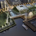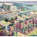 Seeking to reconnect the fenced-in area to the surrounding neighborhood, the plan extends an adjacent street grid through the site and adds new streets in a complementary pattern. The plan also dictates the adaptive re-use of several historic industrial buildings, and provides for a waterfront park.