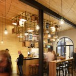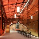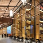 glass creating long sightlines across the hall; seeing and being seen becomes a