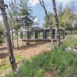 The structure is oriented on an exact North-South axis, ensuring that in the warmer summer days, sunlight is filtered through the surrounding trees, keeping the space cool and resulting in a particular shadow play of branches and leaves. In the colder winter season, the sun’s path -now tilted on a