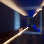 The composition of the stone volumes unifies the various therapeutic uses in a thematic concept to experience, the sauna, steam room, the showers temple, healthy Spa, vital Spa, the Sanotherm, turning it into a unique experience, uniting aesthetics to the highest and sophisticated wellness technology. It is an experience in which the architecture creates the adequate atmosphere to control the light as an element of serenity and the presence of mass volumes in a monochromatic space that predisposes the senses to tranquility.