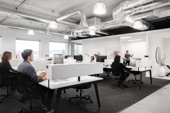 This Place is a digital design studio with locations in London, Tokyo, Hong Kong and Seattle. The design for their Seattle workplace in the Fremont neighborhood illustrates This Place’s core work approach, emphasizing collaborative, open and multifunctional spaces. The digital design studio is divided into three interconnected zones: a collective open workspace at the core that encourages focus, with semi-private project breakout spaces to encourage collaboration and multi-purpose social areas radiating from it and ringing the perimeter. A seamless adjacency between the three zones reflects This Place’s interest in cultivating an open-ended creative work environment.
