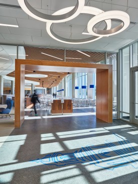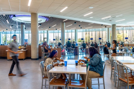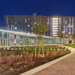 Designed in partnership between HCM and Moody Nolan, the building forms a new campus hub for student activity and strives to enliven the culture of community by creating a vibrant and robust space for gathering. The residence hall, inclusive of 24-hour dining and carefully cultivated individual and group study areas, forms a “live, dine, learn” nexus for students.