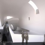 The Planning Museum, entered directly from the shared public plaza defined by the two buildings, opens to an introduction area and a temporary exhibition area. A large Urban Model Exhibition (all of the Eco-City) is followed by a theory and practice zone. Digital projections will facilitate the potential to update and increase information. Transportation and industry exhibits follow on Level 2 with escalators loading to an interactive section and 3D Cinema on Level 3. On Level 3, there is a restaurant with views out to the sea. Escalators lead to Level 5 with Green Architecture, landscape and water resources exhibitions. This skylit large open top level has access to the green roofscape.