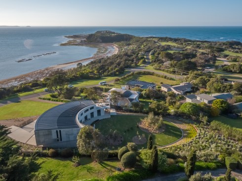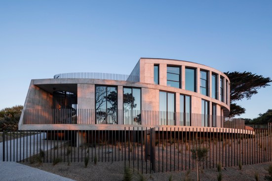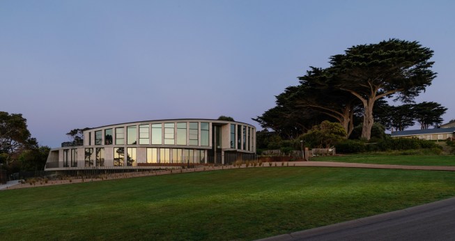 Tidal Arc House is in Flinders, a small town on the Mornington Peninsula, 85km south of Melbourne.