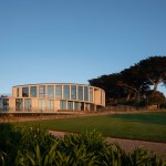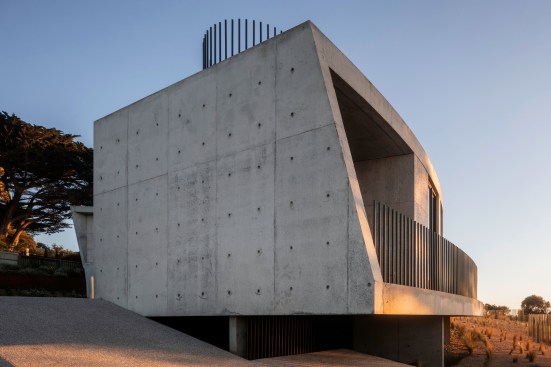 The house follows the contours of the cliff. Tilted to the pitch of the earth’s surface, the roof provides shade from the descending western sun and invites the morning sunrises in, while the sense of movement created by the home’s sweeping edges intermittently mimics the local tidal movements.