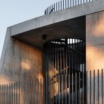 At first appearing large and foreign, the house settles readily into the landscape. Clad in fossilized limestone, clam shell patterns are embossed into the surface – a nod to the area’s Jurassic coral geology.
