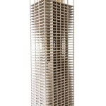 The payoff is that timber is a more sustainable building material than the alternatives. It absorbs carbon while growing, takes significantly less energy to manufacture than concrete or steel, and it can be responsibly harvested and replenished. To underscore the point, Johnson modeled and estimated that the hypothetical timber tower would be 55 percent lighter and emit 78 percent less carbon than a comparable 42-story, conventionally constructed tower modeled after Chicago’s Dewitt Chestnut Apartments, also designed by SOM. Now called the Plaza on Dewitt, the concrete-tube structure was a benchmark of efficient construction at its 1965 completion.