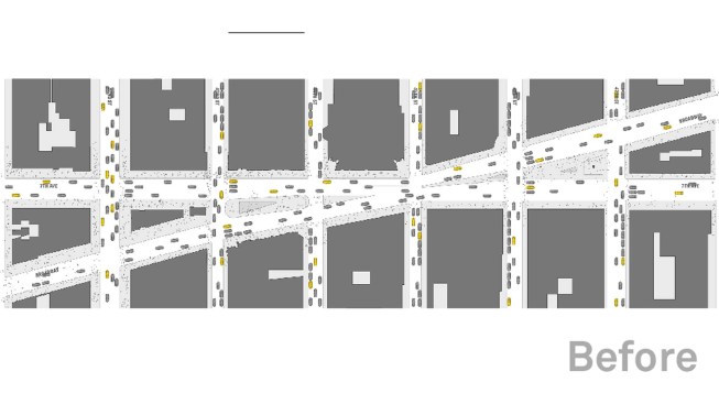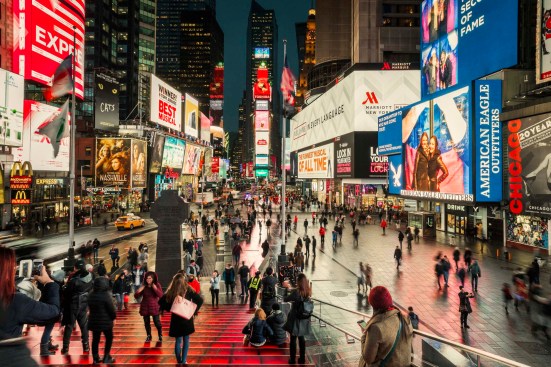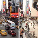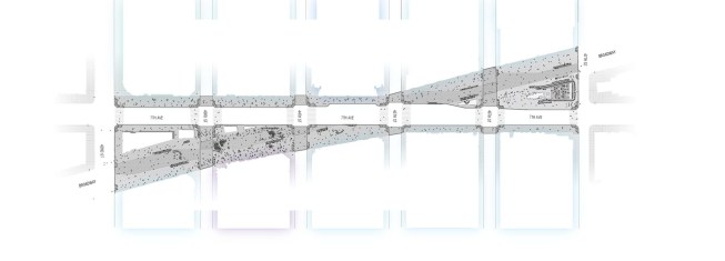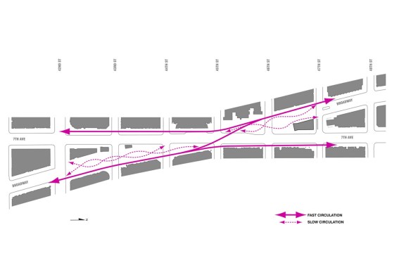 The project site, known as the “Bowtie,” forms the heart of the Times Square Theater District, and is bounded by Broadway and 7th Avenue between 42nd and 47th streets. Since the Bloomberg administration closed Broadway to vehicles in May 2009, and the intersection of Snøhetta’s pedestrian street opened to the public in spring 2014, the transformation has already had a significant impact on public safety, economic output, and user experience. Pedestrian injuries have decreased by 40%, vehicular accidents have decreased by 15%, and overall crime in the area decreased 20%. And with the removal of vehicles, air pollution in the Bowtie area has fallen by as much as 60%, making the space safer and healthier for everyone. Over 80% over visitors now agree that the pedestrian plaza makes Times Square feel safer.