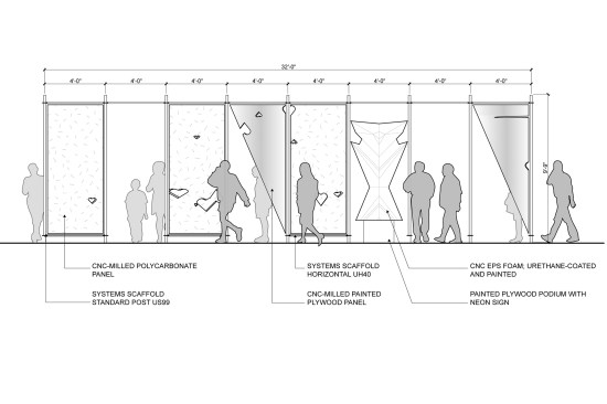 This proposal, an invited finalist for the Times Square Valentine project, invokes the ghosts of Times Square, echoing the sixties and seventies in which shadowy movie theaters allowed for romantic encounters in an era of necessary anonymity. Built in a scaffolding system, the intervention is a metaphor for New York under construction: the city as a changing infrastructure for love in all its complexity.