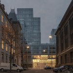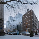 Rather than adding yet another grand statement, Timmerhuis attempts a constructive ‘surrender’ to the city’s present state. The building’s formless, seemingly improvised composition acts as an echo of the city’s mood. It creates the possibility of different experiences: from the Coolsingel, viewed between the Town Hall and the Post Office, the building appears nearly symmetrical, monumental even… on the other side, in relation to the existing monument, the same building appears delicate and accommodating.