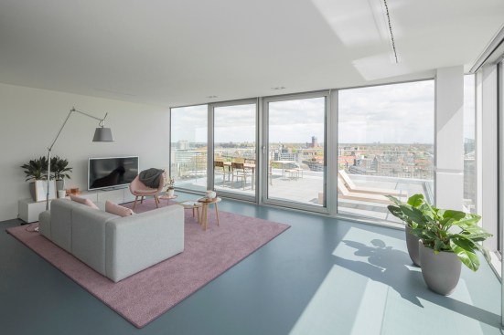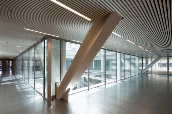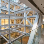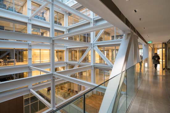 The design brief stipulated that the Timmerhuis must be the most sustainable building in the Netherlands. OMA tackled this imperative through the building's core concept of flexibility, and also through the two large atriums, which act like lungs. They are connected to a climate system that stores warmth in summer and cold in winter and releases this energy as warm or cold air as required. The building's triple glazed curtain wall facade uses hi-tech translucent insulation that allows for unprecedented energy efficiency.