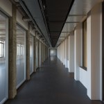 Rather than being yet another statement in Rotterdam's crowded history of revisionist planning and cacophony of architectural styles, the ambiguous mass of the Timmerhuis tries to mediate between the existing buildings surrounding it. The axis between the existing town hall and the post office coincides with the axis of symmetry of the Timmerhuis , and the street between these two buildings continues into a passageway to the Haagseveer. The Timmerhuis integrates with the neighbouring Stadtimmerhuis by maintaining the same floor heights, while the plinth height of 20m conforms to the character of the surrounding Laurenskwartier.