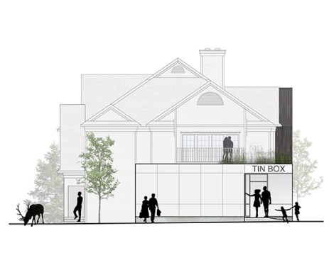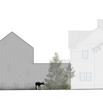 The Rocky Mountain vernacular of the existing house speaks to Canmore’s past with its gabled roofs, decorative accents and use of natural materials. Rather than demolishing the house we saw an opportunity to create a dialogue between the past and the future. We abstracted the existing house by rendering it completely white in an almost ghostly manner. To complement this spectral condition, we wrapped it with a quiet, contemporary addition that derives its language from a modern interpretation of the existing building as well as from the local mining history. Clad in glass, charred cedar and standing seam metal, the new addition both contrasts and respects the existing building with an innovative interpretation of the vernacular.