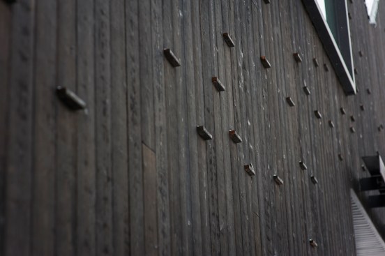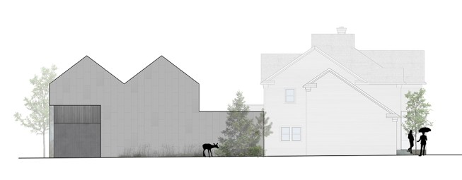 Both the town and our client required us to provide space for public art somewhere on the site. Rather than take up space that could be used for the building, we came up with an innovative means of incorporating art right into the architecture. To celebrate the spectacle of winter, we devised a whimsical tectonic that expands upon the simple installation methods of the wood siding by adding numerous ledges that form a large, pixelated field across the entire west elevation. This field reveals itself by casting subtle shadows and comes alive during a snowstorm when the individual ledges accumulate snow.