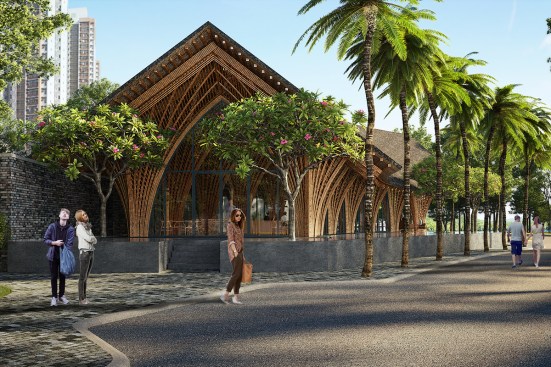 The bamboo has been treated with a traditional, Vietnamese method in order to naturally reach the high quality and long-term durability that the project demands. This type of treatment can last from 30 to up to 50 years. This natural treatment also contributes to the architects sustainable design approach of the project. By using bricks vernacular bricks of the region, the new building will integrate itself well within its context and harmonize with its surroundings.
